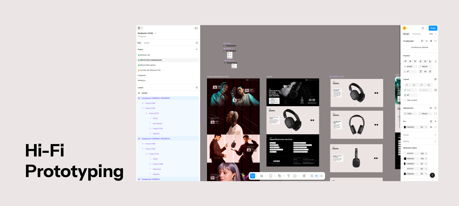 Diseño web responsive del catálogo de VOSS. Tenía que ser un catálogo muy visual sin precios ni llamadas a la acción de compra en esta fase. Como única diseñadora UX/UI me encargué de todo el proceso de diseño desde las reuniones iniciales con cliente hasta la documentación final para desarrollo.